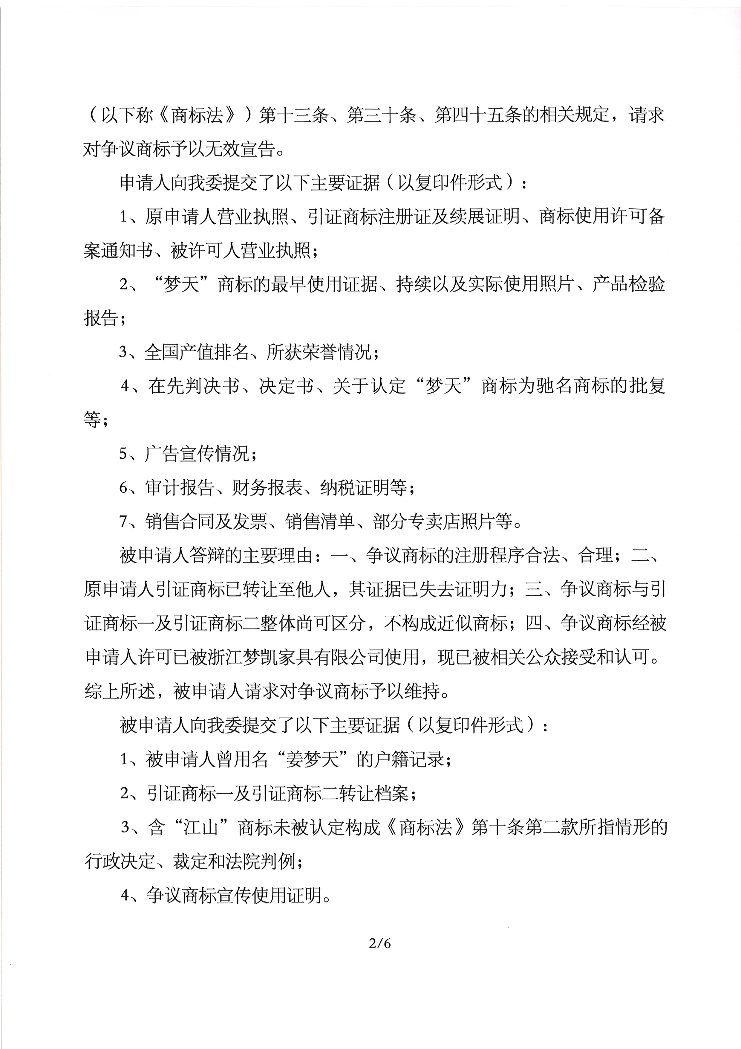 第20类第16805331号“江山梦天JSMENGTIAN”无效宣告裁定书